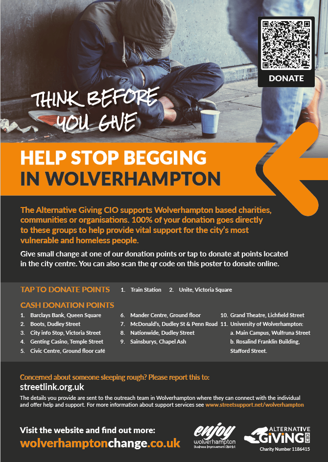 If you are concerned about someone sleeping rough, please report this through to www.streetlink.org.uk, where the details you provide are sent to the local authorities and outreach teams in Wolverhampton where they can connect with the induvial and offer help and support. For more information about support services for homeless people see Street Support Wolverhampton – Working together to tackle homelessness in Wolverhampton